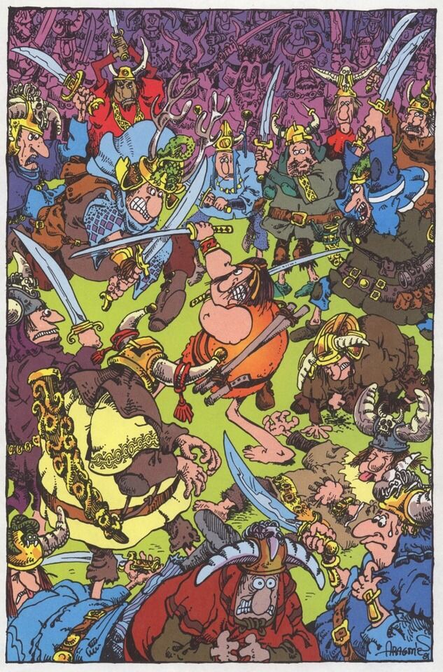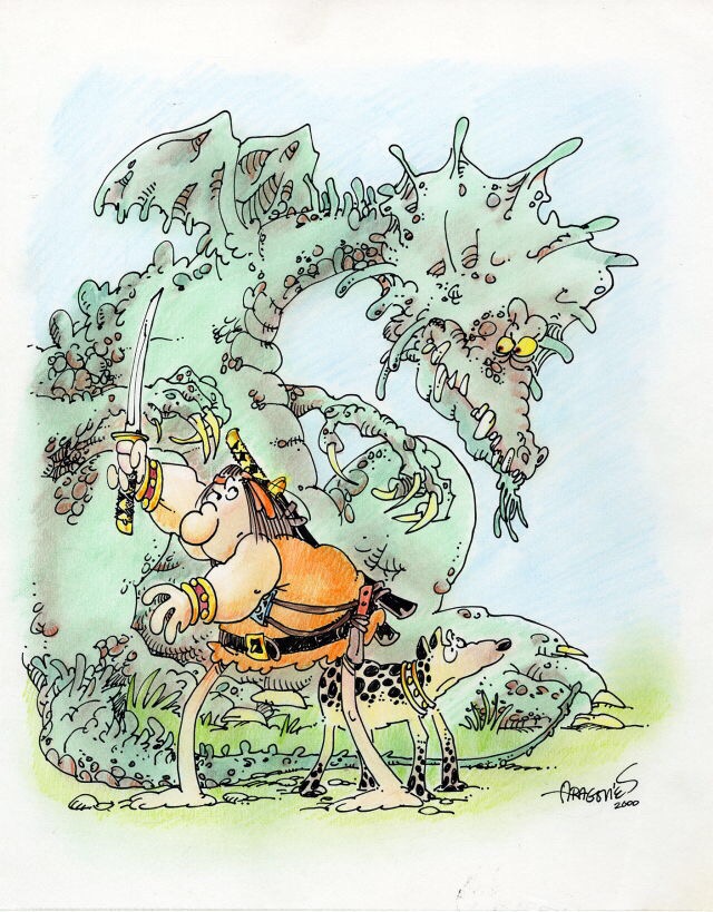 Groo the Wanderer is a master swordsman and his interests include going to battle (especially when he has no clue what the battle is about), working odd jobs, his dog Rufferto, being accident prone and cheese. He was created in the 1970’s by Sergio Aragones as a tongue and cheek version of Conan the Barbarian.