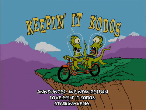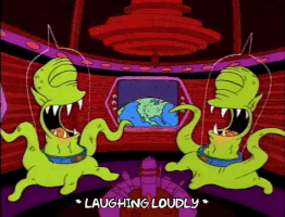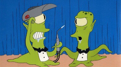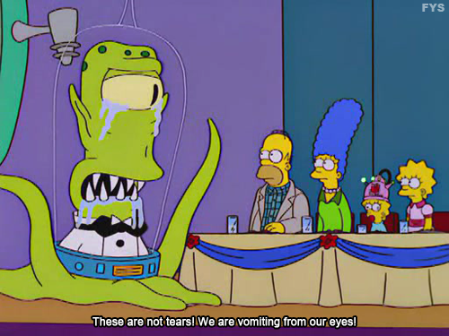 The next story is called “Hungry are the Damned”. This is the first time we are introduced to Kang and Kudos (which are two characters they are frequently on the treehouse of horror episodes). While the Simpsons are having a barbecue they get abducted by Kang and Kudos. They assure the Simpsons that they only want to take them to their home planet (Rigel IV) however Lisa is very weary of their intentions because she finds a cookbook called:
