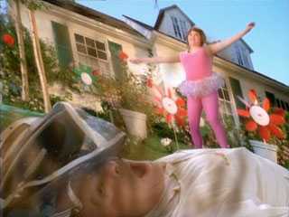 With a dancing little girl wearing a tutu near a beekeeper who is on the ground. In Blind Melon’s music video “No Rain” the central character in that music video was little girl in a bee costume:
