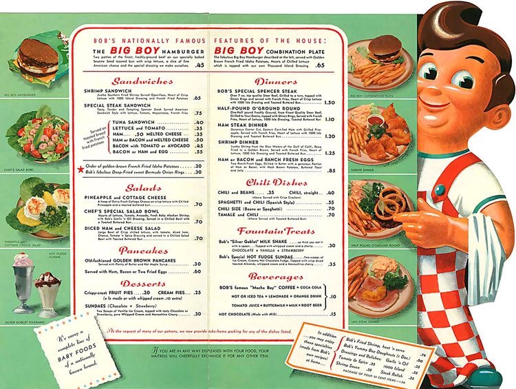 The restaurant started in California 1936 by a guy named Bob Wigan. He originally named his restaurant Bob’s Pantry but patrons of the restaurant at the time was referring the eatery as Bob’s or Bob’s Drive In’s, and then Bob’s Big Boy. The phrase was more commonly used due to the menu item the Big Boy Hamburger: