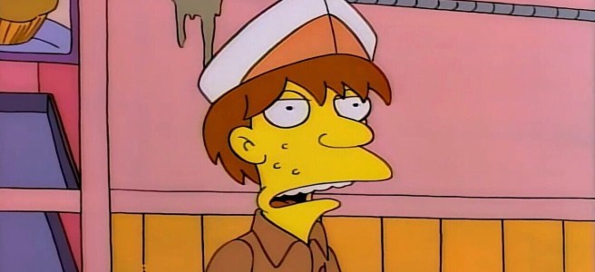 Jeremy Freedman or better known as the teenager with the squeaky voice. He has always been one of those staple background characters on the show. You usually see him working at Krusty burger or some kind of fast food restaurant: