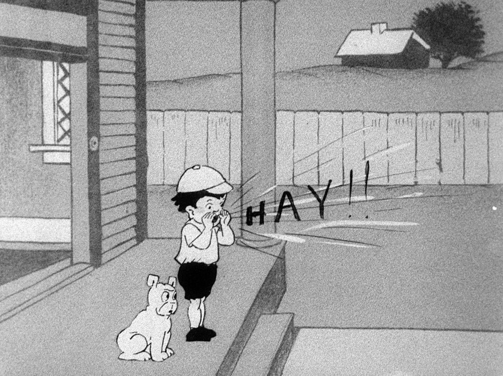 The Bobby Bumps cartoons, animated by Earl Hurd (1880-1940), were the first series to use what we call cell animation, which was developed by Hurd. In short, Hurd patented the process whereby clear sheets of transparent celluloid could be used in the process of animating a film. It’s similar to the concept of ‘layers’ in modern programs like Photoshop, where different moving or morphing elements can be sandwiched together and photographed without changing all of the artwork on one single level. Prior to this, the process of animating for motion pictures was far more limiting both aesthetically and technically, and the cell process allowed much more to be done in terms of design and also in speeding up production. As for the character itself, Bobby is a mischievous little boy with a small dog, Fido, who are always getting into trouble together. I find the humor to be subtle but very creative and amusing. Hurd apparently found inspiration in his own young son, and the character dates back to the earlier 1910s when it first appeared in a few different newspaper comic strip iterations with different names. Given the age of the artist, Hurd’s particular drawing style, and the early point at which this series appeared in production, I also view this series as a rare and unique form of a more Victorian era form of cartooning set into motion, which is fascinating to be able to watch more than a century later. The series has a decidedly more antiquated look than others that were in production at the same time, and looks nothing like what was made by other animators in the 1920s and 1930s. It truly is from another time. Hurd enjoyed some success with this series and with the financial returns on having his cel animation patent be part of a trust company that was formed with his 1916-1919 producer, J.R. Bray, which capitalized on the process and forced some rival studios to pay a royalty for employing the process in their films. If you look at some of the earliest Mickey Mouse cartoons, for example, the Bray-Hurd Process is credited at the bottom of the title cards, until their patents expired in 1932 or so. Hurd later worked on Snow White and the Seven Dwarfs (1937) for Disney. I’ve always taken a particular interest in the Bumps cartoons, working hard to collect as many of the previously neglected and lost films as possible, and am proud to have produced a Blu-ray/DVD collection of fifteen of the original shorts, featuring brand new restorations. These films are now available in a volume called Cartoon Roots: Bobby Bumps and Fido.