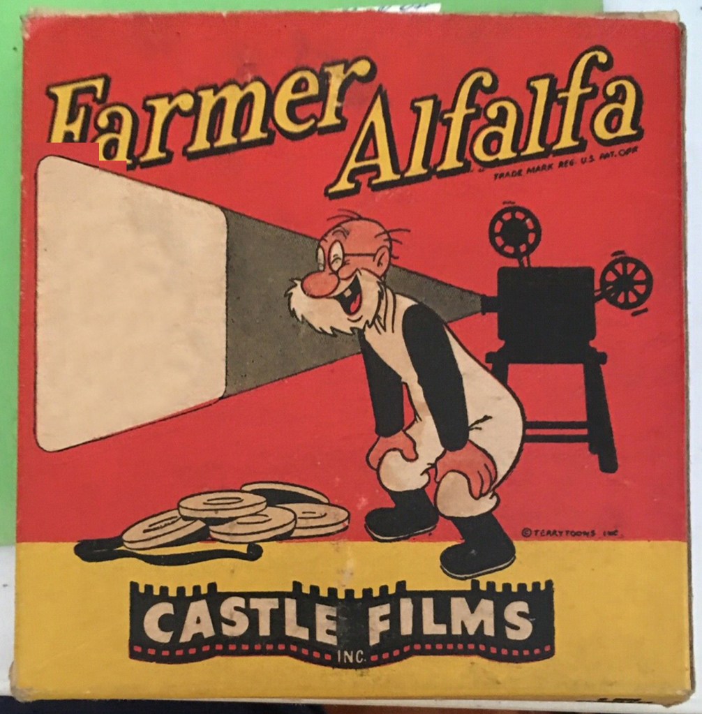 The second character, Farmer Alfalfa, was created by another newspaper cartoonist and early animator, Paul Terry (1887-1971). Farmer Al first appeared in a short cartoon called Down on Phoney Farm (1915), which I was delighted to help rediscover some years back in an untitled, unidentified print in the Library of Congress’ collections. Not long after, Terry was brought in to produce this character in a recurring series for the Bray Studios in 1916 (where Bobby Bumps was well underway!) and, after a few more independent stints, Terry finally organized his own studio and began releasing a quantity of films on a regular basis in 1921. Terry didn’t really develop any groundbreaking technical innovations for animation in the same way Hurd did, but, he was one of the first to release animated cartoons at breakneck speed, and was practically the largest producer of cartoons in the silent era and 1920s. His studio produced something like 450+ “Aesop’s Fables” cartoons from 1921 through 1929, many of which featured Farmer Alfalfa. I enjoy the character a lot because he’s a cranky old man who’s always getting into trouble in his farmhouse, on his property, or anywhere else he’s adventuring through…and the entirety of the animal kingdom (including most other humans) mostly hate the guy! It’s pretty funny to see how much he fails in getting along with others. Perhaps it gives comic relief to all the disagreements we come across in real life. Terry continued using this character heavily in the sound era, in many cartoon entries of the 1930s and 1940s, and many baby boomers remember seeing these older cartoons on early television in the 1950s and 1960s. It’s fun when they recall these early childhood memories and I tell them that I’m still showing them in my programs.