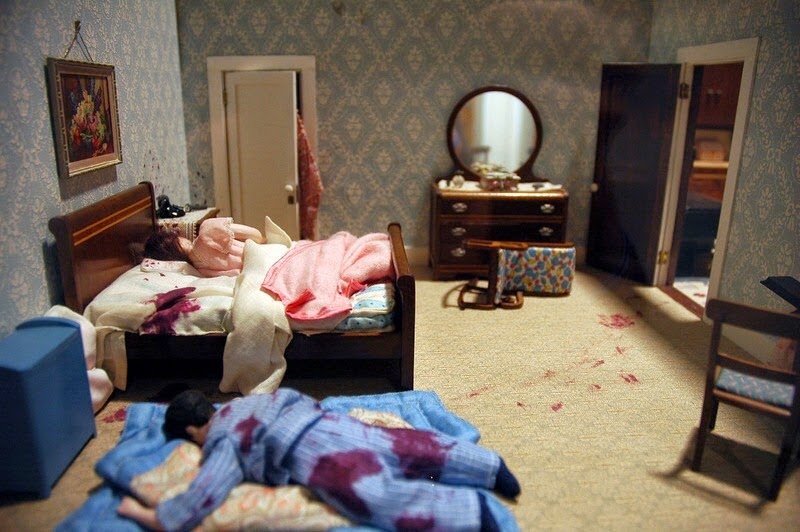 The whole true crime doll scenes came about stemmed from Frances Glessner Lee want of students who were studying this field to get as much of an experience than just hearing lectures. And of course taking students to an actual crime scene was a no no because of the high possibility of disturbing the crime scene. So this was Frances next amazing effort and you can see her true talent start to pour out. Through the decade of 1940-1950 Frances had held a bunch of week long meetings and would take her scenes with her. She had created with the upmost detail 20 true crime scenes and called them: “Nutshell of Unexplained Death.” She would also extend the invitation of theses week long meetings to other people in the police, political science field, and medical field to see if they were able to solved the scenes from the true crimes scenes she made.