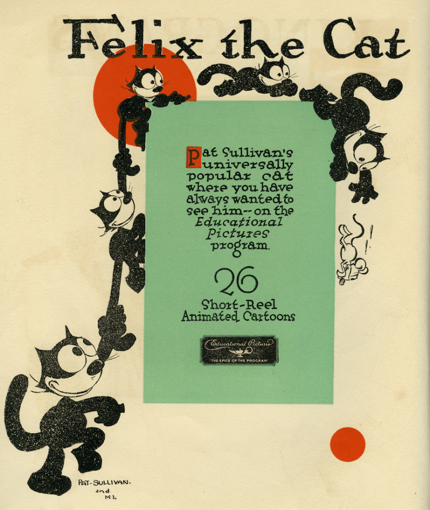 Last, but certainly not least, is Felix the Cat. Felix first appeared in 1919 as part of the Paramount Magazine series of film releases. However, he wasn’t Felix at first! He was first known as Master Tom and lived in ‘Pussyville.’ No joke. Soon after, though, the character was aptly named Felix. The classic original Felix the Cat cartoons were produced in 1919 through 1930, animated by Otto Messmer and a team of assistants, and produced by early animator and studio owner Pat Sullivan.