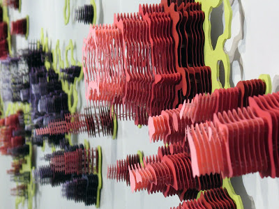 “So I think the first major piece I created that put me on the path I am on today is “Triple Radimacue Infestation”. This was a piece I created immediately when I got back from my residency in NYC. It was my first exploration into large scale installation. It was 6′ x 45′ and was comprised of over 100 paper towers, 6 large panels, and 3 smaller panels. It was my break out piece and was exhausting to create. Since the paper was 15″ x 15″ to 12″ x 12″ it needed support structures to live on so I derived a system of cutting out panels, made of wood, in very organic shapes mimicking that of bacteria or fungal growths. I ebbed and flowed off the wall creating rythmic undulations that made the work come to life. It was an exhilarating experience that I never looked back from. “