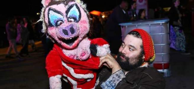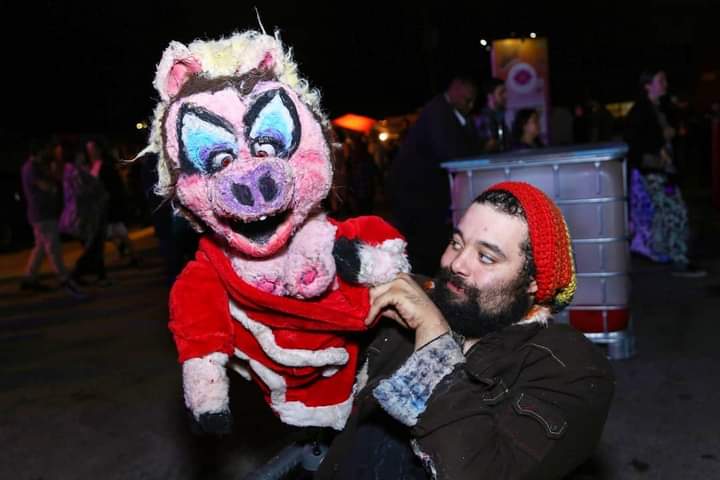 “Hello world, I am Nate Puppets let’s see, I’m… 6.6, half black and half Jewish, use a wheelchair sometimes, love movies and spaghetti….. Wait wrong about you……. Hello! I am an Artist from Cleveland OH. Okay well obviously I’m an artist, this is an artist spotlight after all. I guess this is more about what I do as an artist so, let me get into that a bit. I’m a puppeteer and a cartoonist although I’m sure other people in the respected fields might possibly disagree with me. For the last decade and a half I’ve been roaming the city and country with my funky, furry, fabulous brain children, creating a true blue genuine what the actual fuck am I watching kind of experience that makes people say, “Oh my God, Helen! Grab the kids I’ll start the car!”