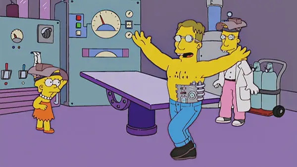 Unfortunately when the young Frink did that there was a side effect. Since his dad had a side of his body missing because of the shark bite he took it upon himself to get the missing parts from other people. And he became a Frankenstein kind of creature.