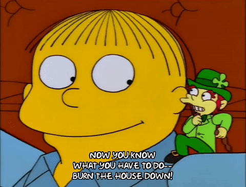 Leprechaun- (appearances on Treehouse of Horrors- XII, XXV, XXVI, XXVII, XXVIII) this character wasn’t only on the treehouse of horror episodes. He is also known as Ralph’s imaginary friend who tells him to burn things: