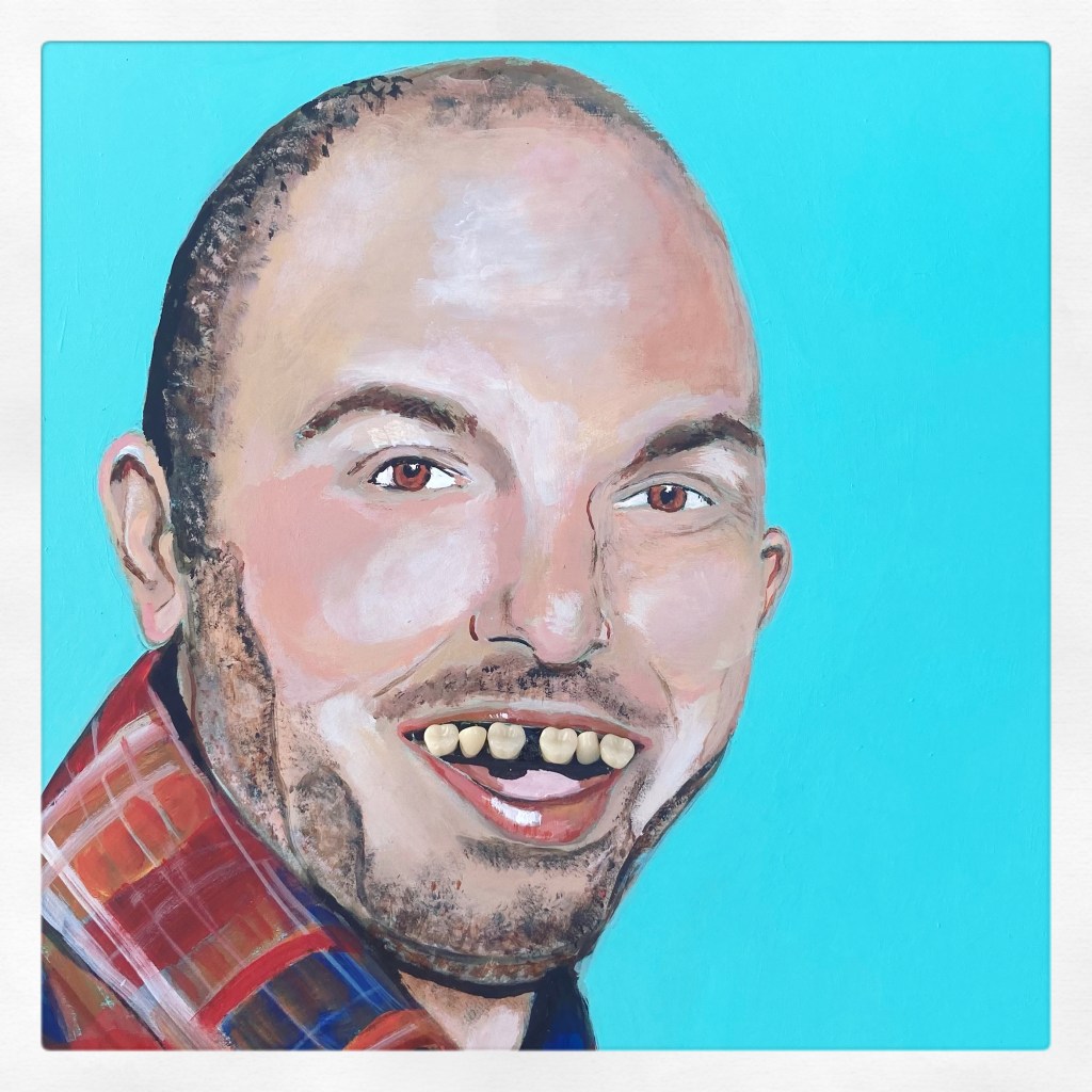 The first ‘proper’ painting that I created was the portrait of my Uncle cutting my Grampy’s hair. I wanted to capture his bold character in this moment, highlighting all the wonderful amusing little quirks that make each family unique. My favorite thing about this one is the narrative – I’ve had so many dramatically different comments on it. Some people recognize their family, or someone famous (had some VERY questionable names pop up here), or they think he’s a boxer in a ring maybe. I think its fun to get people thinking and re-remembering certain moments from their own lives; some stories I would have never otherwise heard if it wasn’t for my paintings.”