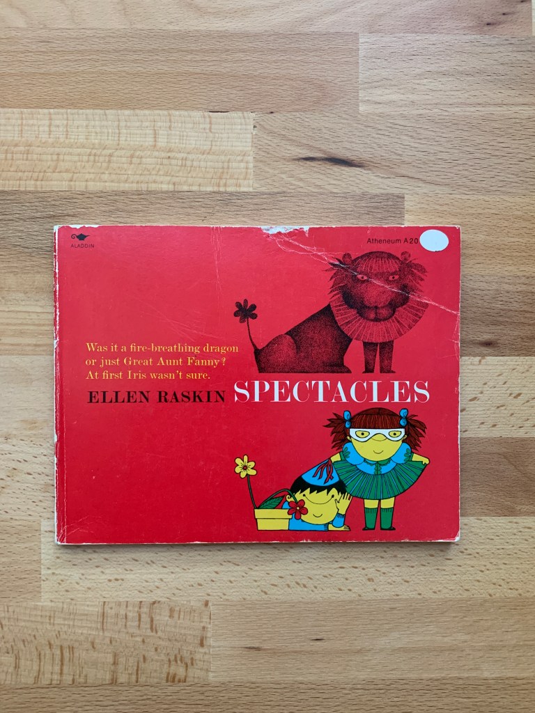 The first book I ever posted was Spectacles by Ellen Raskin, one of my favorite children’s book authors. Spectacles is basically a visual gag about what a little girl sees or thinks she sees before and after her first pair of glasses. Most people know Ellen Raskin from The Westing Game, which was one of my most treasured chapter books as a kid, but she was a prolific picture book author and illustrator too. Her illustrations from the late 1960s are incredible.