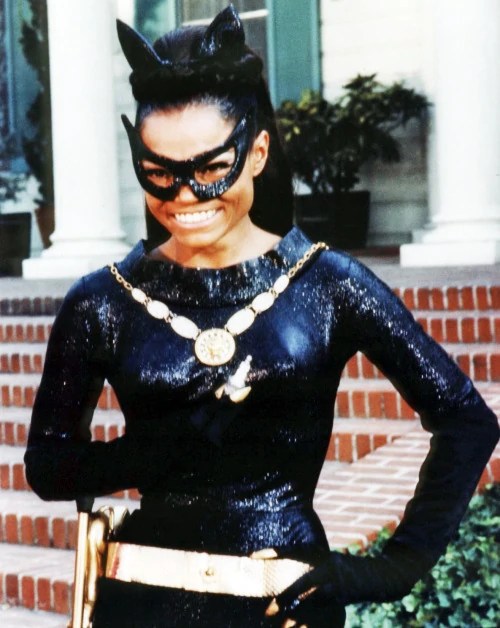 Eartha Kitt is also another of my forever icons. She was the second actress to play the villain Catwoman and one of the top five most popular villains in the Batman series. Her dialogue usually has a lot of meowing and purring mixed in. And it is no secret that there is definitely romantic sparks between her and Batman. However his crime fighting ways and her villain persona always keep them apart from being with each other.