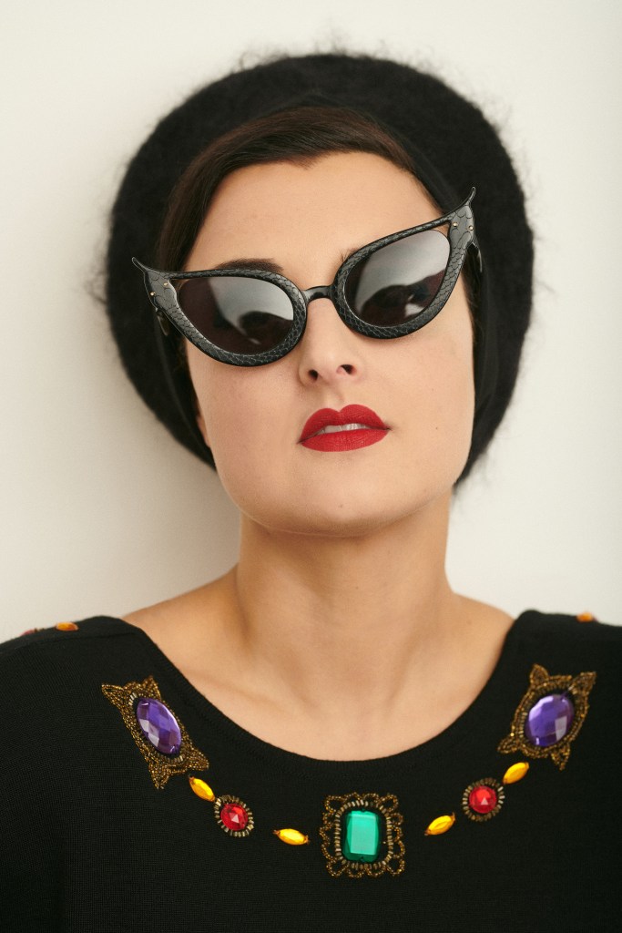 I studied fashion and dressmaking and translated that into millinery 15 years ago. Back then I didn’t really think about accessories beyond headwear until I got my hands on a vintage pair of Safilo Peggy Guggenheim tribute sunglasses, they were great and ticked a few boxes but something wasn’t quite right with them. The glasses had a sad turned down look so I decided to redesign them and make them better…and my ‘PEGGY’ shape was born. I found an artisan in the UK to make me a prototype pair, which was as far as I was planning on taking it, until I posted a photo on Instagram and was urged to take them into production. Since then, I’ve had great fun dreaming up new styles. I currently have a lovely family factory in Canada that help me with eco friendly production. I really believe in buying smarter, less and good quality. My Eco-warrior lifestyle is at odds with mass manufacturing which is why I have kept this venture small and Mother Earth friendly.”
