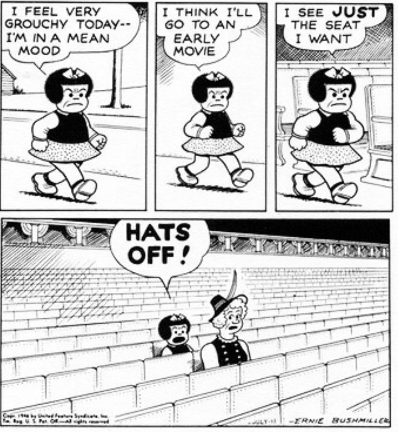 Another big influence is Nancy by Ernie Bushmiller. For Bushmiller, economy, directness, and authenticity are virtues. If “Anti-Peptalk” could be half as relatable as Nancy, I’d be extremely happy.”