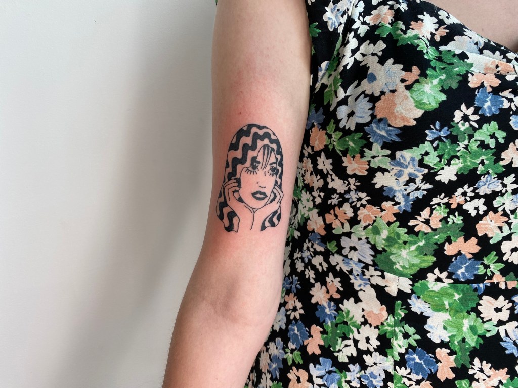 “I do in fact have a Shelley Duvall tattoo that I got done by NYC tattoo artist Chris Cutthroat in August 2021. I happened to come across Chris’s Shelley flash tattoo on Instagram and had to get it on me forever. The tattoo is inspired by Shelley’s Brewster McCloud photoshoot – with her stringy dark hair and big Twiggy lower lashes. I love having it on me and staring at it all day, even if some people like to comment on it asking if it’s of me or Lady Gaga. But I’m excited for the warmer months because I can show it off again. And Shelley herself even knows about my tattoo and loves it – although I didn’t need that validation it’s nice to have her appreciation in return.”