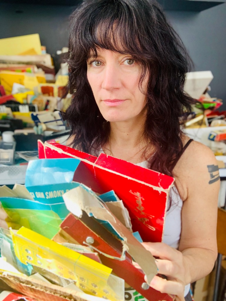 “I’m a child of the 70s so I love TV, gameshows, feeling tan, frosty pink lipstick, popsicles, pasta and pizza. I dream about some day owning a hot tub. I grew up in the suburbs less than a mile from one of the largest malls in the country. The King of Prussia Mall was my wilderness. It’s where I went to to wander around and daydream. My father is Italian from South Philly that never throws anything away because one day we might need it or some day he might get around to fixing it. And and my mother was an immigrant from the Ukraine who could improvise anything when we didn’t have what we needed. Which was most of the time. I learned at a very young age the satisfaction of making something from nothing.”