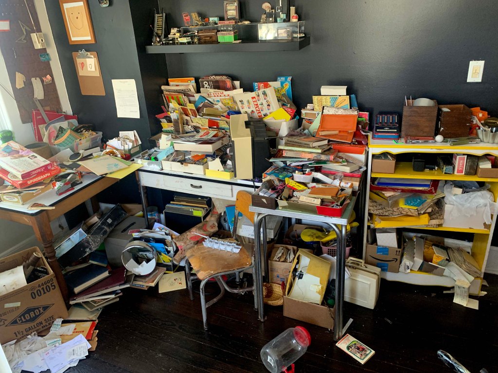 “When I was 21 I moved from King of Prussia, PA to San Francisco with two suitcases. I was in a pretty nice sized flat with some strangers and I realized what I missed most was tchotchkes. I was barely making any money (at my graphic design job) but every Friday when I got paid I would stop at the thrift store on the way home and treat myself to an armful of eclectic items I could decorate with. I also made use of a lot of people’s trash. I hung old broken frames and broken sewing machines and dead flowers on my walls and I slowly started to feel like this place was my home. The collecting (hoarding?) never stopped. I’d wander through Chinatown and Dollar stores and safely keep my treasures in a large box in my room. Eventually one box became 3 and then 5 and then when I moved back to the East Coast I started raiding my childhood home. It was like the best Thrift Store ever (not just because I didn’t have to pay for anything) but the materials had even more sentimental significance. I consider these materials my inheritance!