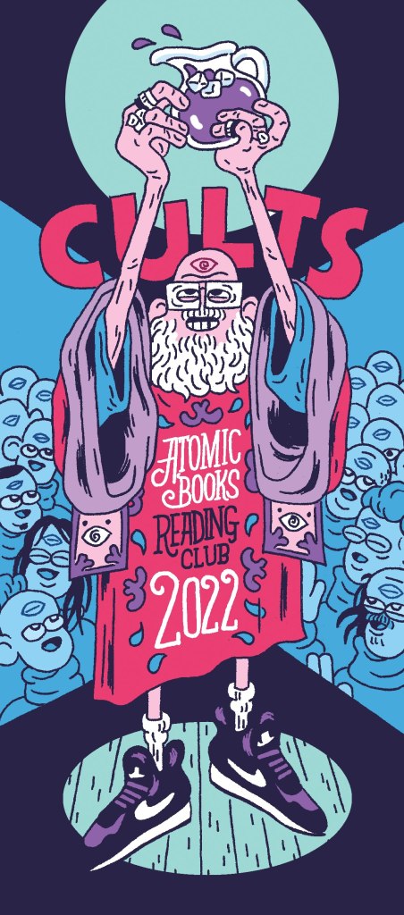 Each year, Rachel and I decide on a topic. This usually involves lists we make throughout the year. We narrow those lists down to a couple of topics or themes, (we’ve done Cult Classics, Post-Apocalypse, Series Firsts, From Page to Screen, Short Stories, Music, etc.) and we then begin to populate it with books. Typically, whichever list looks the most fun is the one we go with. This year, our theme of Cults has been especially popular. When we select books, we typically choose a variety of fiction, non-fiction and comics.