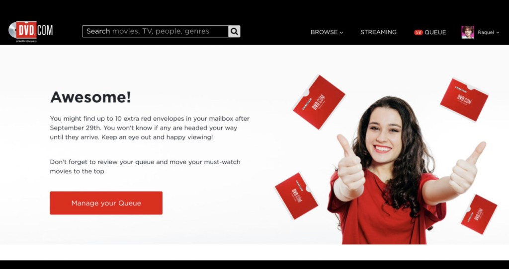 So I was devasted when I heard that Netflix decided to terminate its DVD program this year. I guess it makes sense that most media is on streaming apps, but I will dearly miss seeing that red envelope in my mail. I opted into getting ten discs mailed out to me, but I feel it won’t be the same. I feel like am one of the very few groups of movie fans that was still part of the service, but at least I hung on until the end. Fortunately, I subscribe to many streaming services to feed my movie mind, but I will still miss this part of Netflix.