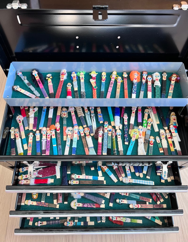 I continued making them until it wasn’t cool anymore (age 13), and for the next two decades they lived jumbled in a Ziploc bag buried in a desk drawer, until one day I reappreciated how cool they were and bought a toolchest, lined the drawers with green felt, and placed each stick safely in their new home, to be preserved for some unforeseen future purpose.